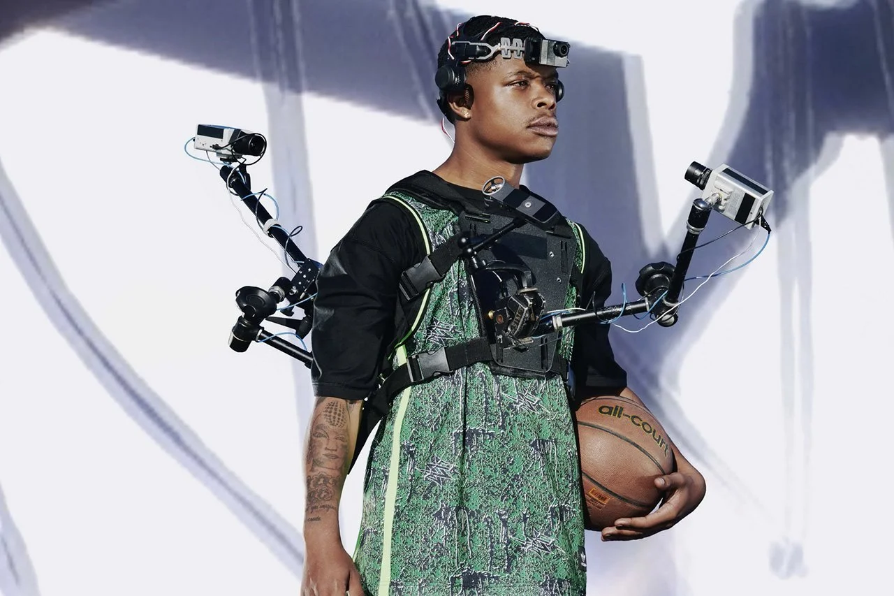 For the shoot, our goal was to capture the seamless fusion of urban basketball culture with a retro-futuristic aesthetic. Drawing inspiration from both on-court basketball style and the vibrant streetball scene of the West Coast. Zhe's design vision, rooted in the 1990s, gave rise to a diverse range of reversible hoodies, sweatshirts, chino pants, basketball jerseys with shorts, and showtime hoodies, offering versatility and expanding the potential for unique looks.