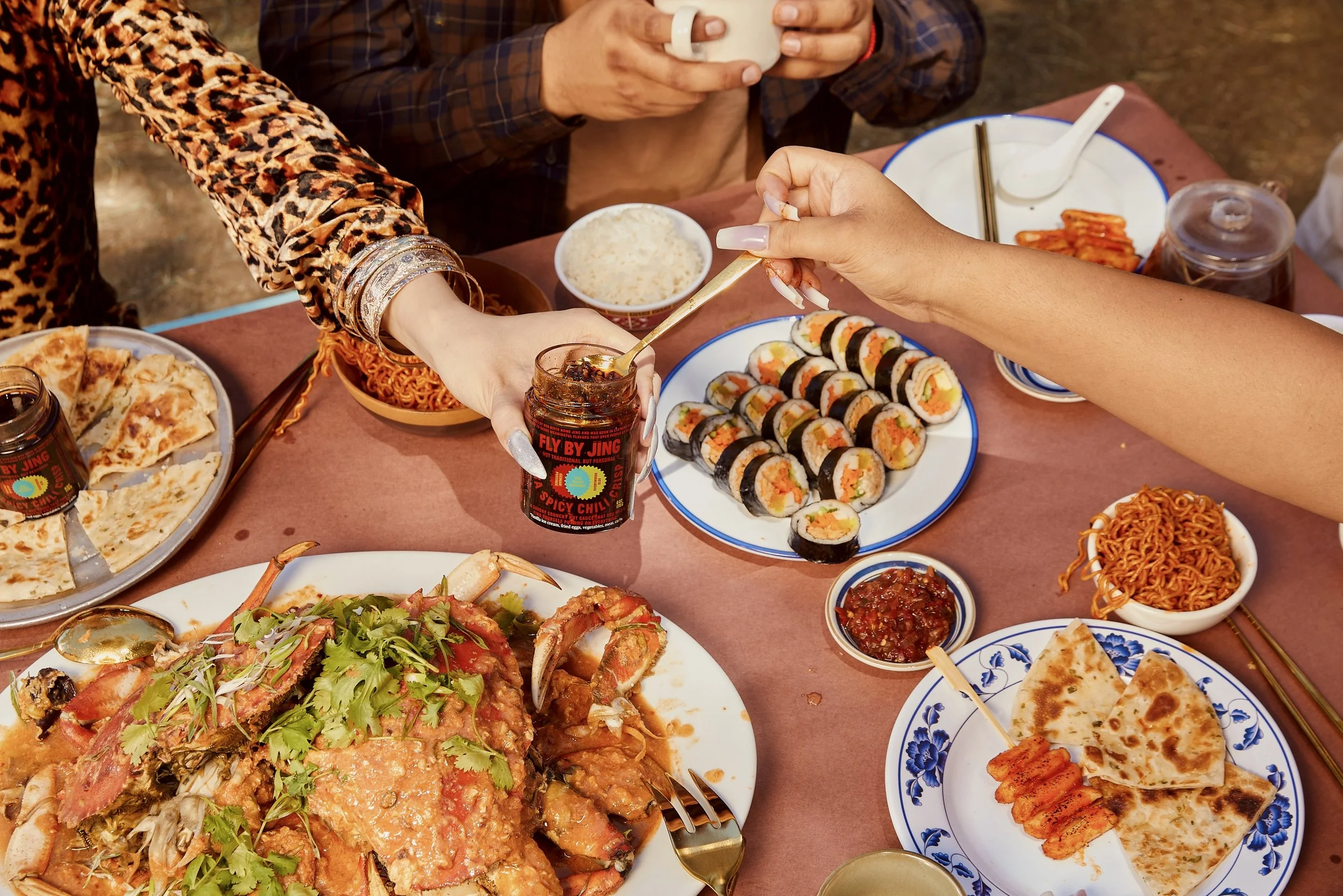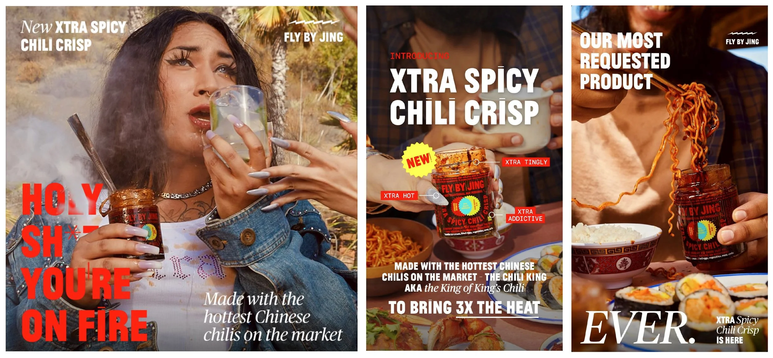 As the lead producer of a launch photoshoot for FLY BY JING as they prepared to introduce a new spicy condiment to its product lineup—Xtra Spicy Chili Crisp. I was tasked with leading and managing production, sourcing locations, securing and booking talent, including a food stylist and all logistics on set. Photographer who captured this product launch was Justin J. Wee.